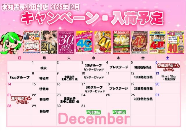 あなたの欲しいがきっと見つかる未知書房 小田部店です。未知書房では毎月お得なキャンペーンを実施中です。無料ですぐに作れるポイントカードもあるのでよろしくお願いします。また小田部店では女優さんのサイン会もたくさん行っているので一度遊びにきてください。